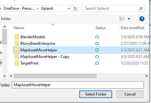 After downloading the above files, unzip and place them somewhere on your machine that you will be able to find them. ie C:\Upland\MapAssetMoveHelper