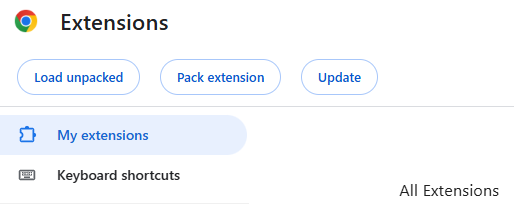 Now the manage extensions window appears. Select the option to Load Unpacked: